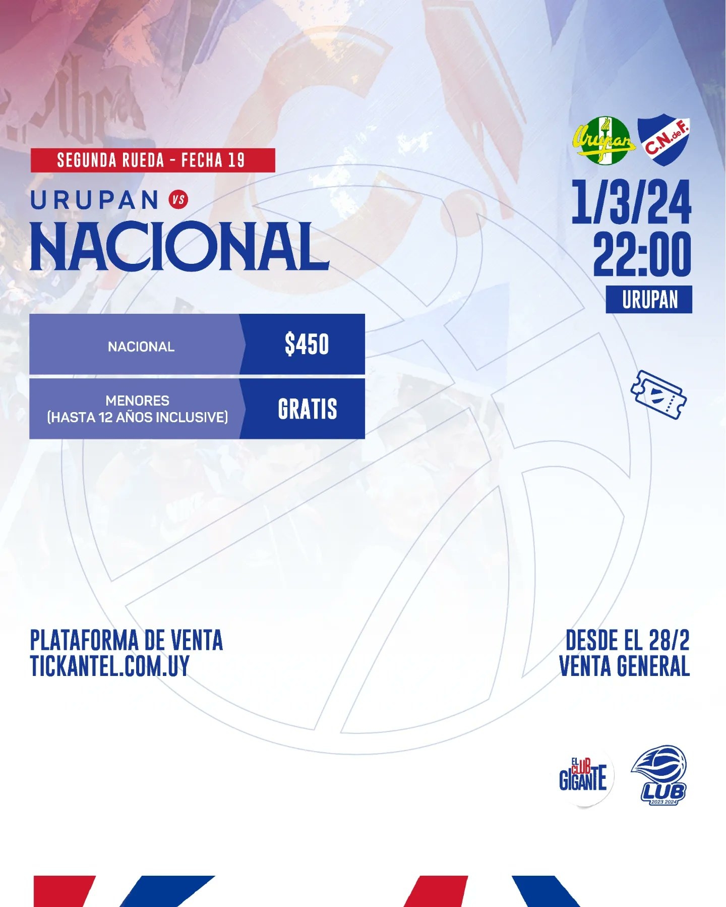 El partido entre Nacional y Urupan, como sucede en cada partido del Bolso en la Liga Uruguaya de Básquetbol, podrá verse a través de NacionalTV+ en nuestro país y en todo el Mundo.