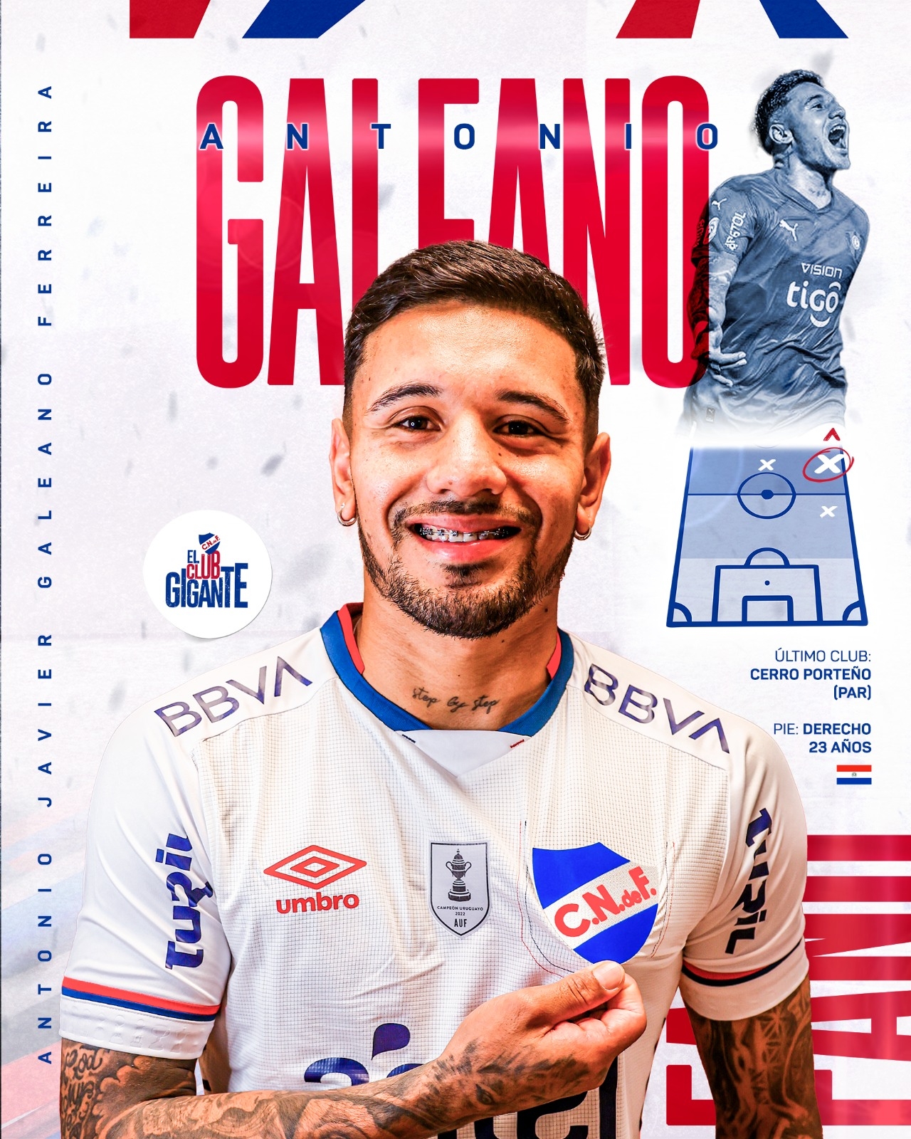 El jugador paraguayo de 23 años Antonio Galeano desembarca en el Campeonato Uruguayo por primera vez en su carrera proveniente del equipo de Cerro Porteño, donde fue figura y residía desde el año 2022.