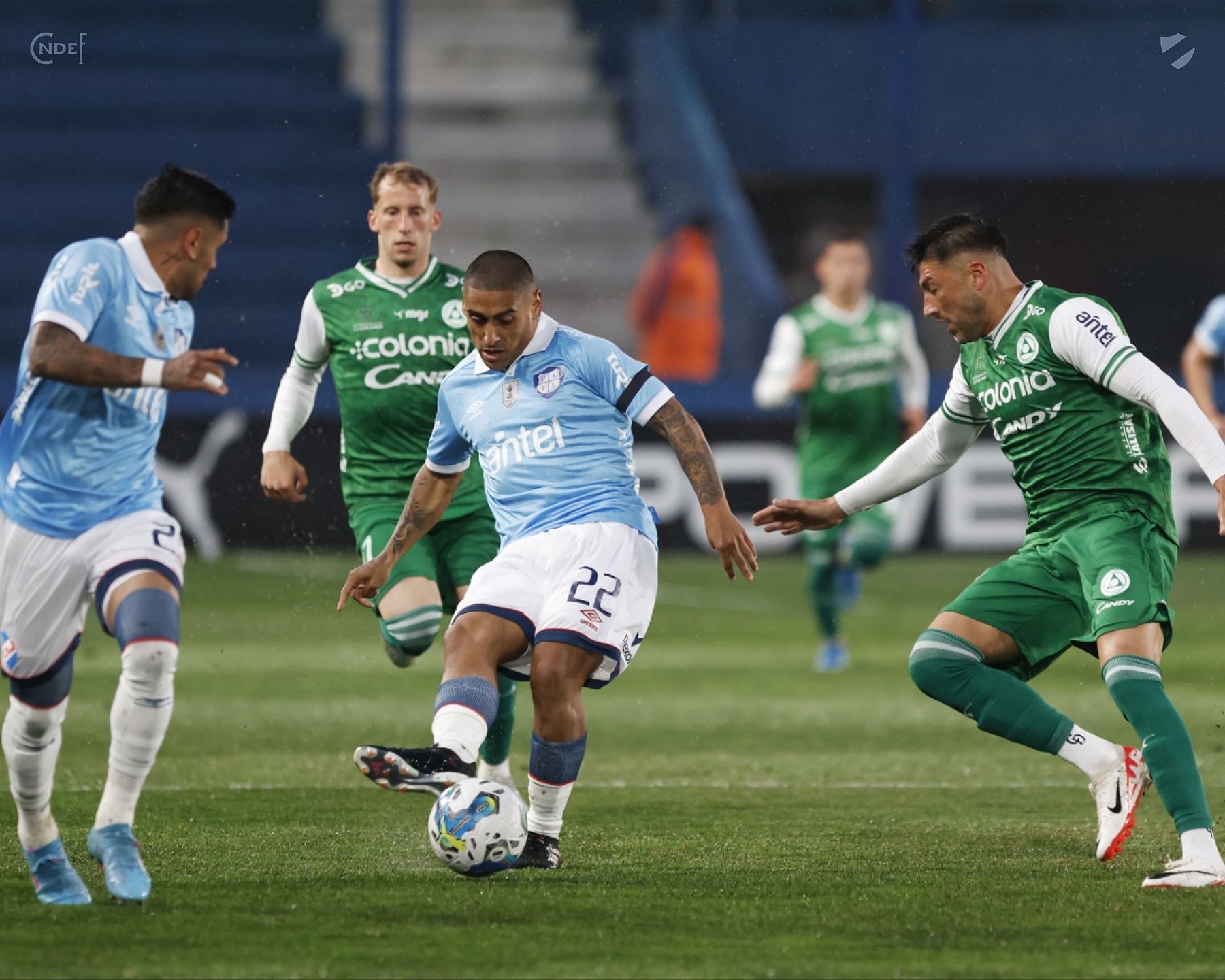 Como en cada mes de septiembre, el Decano saltó al campo de juego del Primer Estadio de las Copas del Mundo vistiendo la flamante camiseta celeste 2023. Desde el vamos Nacional salió mucho mejor en el partido, intenso, con buen trato de pelota y mucho juego por la banda derecha, consiguiendo pisar el área rival dos veces en los primeros 5 minutos.