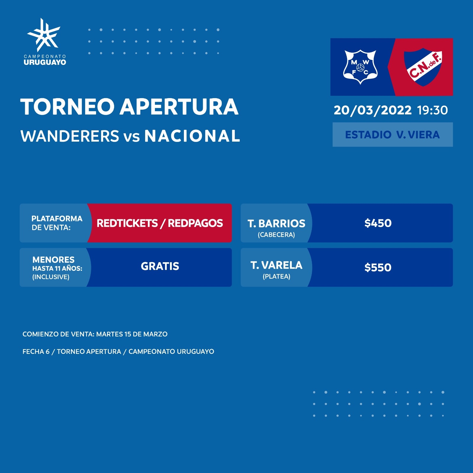 Ya están disponibles los tickets para el partido del domingo ante Montevideo Wanderers, encuentro por la 6ª fecha del Torneo Apertura