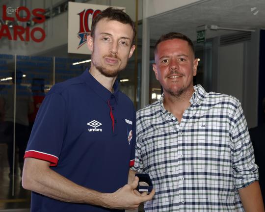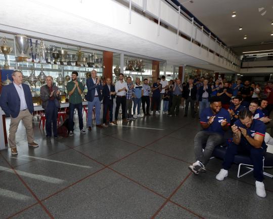 El pasado lunes el plantel del básquetbol de Nacional fue homenajeado en el mítico Salón de Cristal de la Sede Social del Decano, donde por parte de la Comisión Directiva, encabezada por el Presidente Alejandro Balbi, se les hizo entrega de la medalla doble Atilio de Diamante. Ésta medalla es la que se le entrega a los hinchas Tricolores que cumplen 75 años como Socios del Decano, siendo el máximo reconocimiento que otorga nuestra institución.