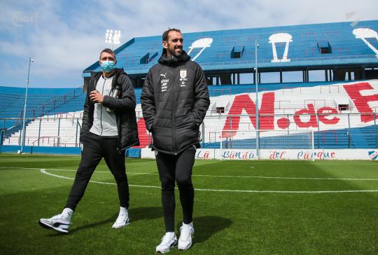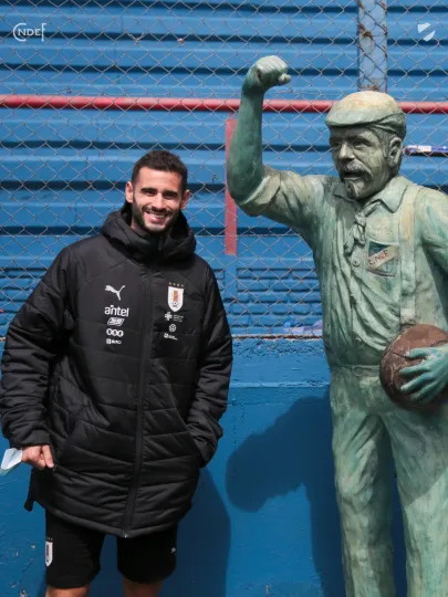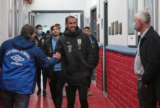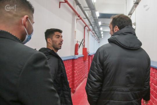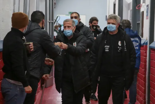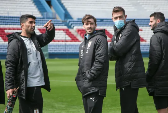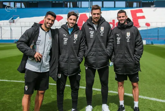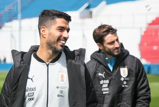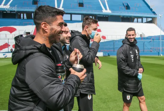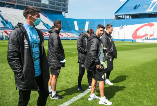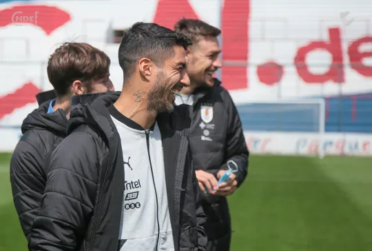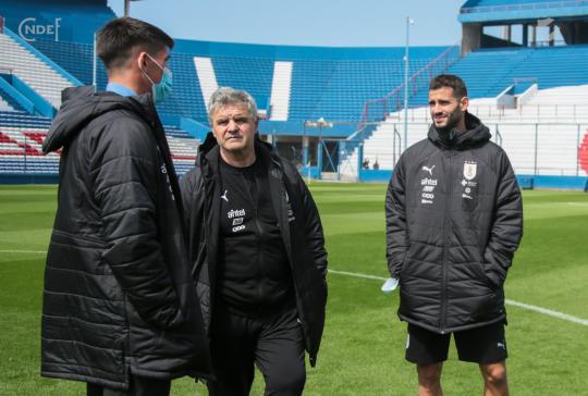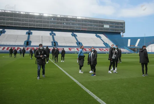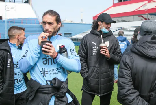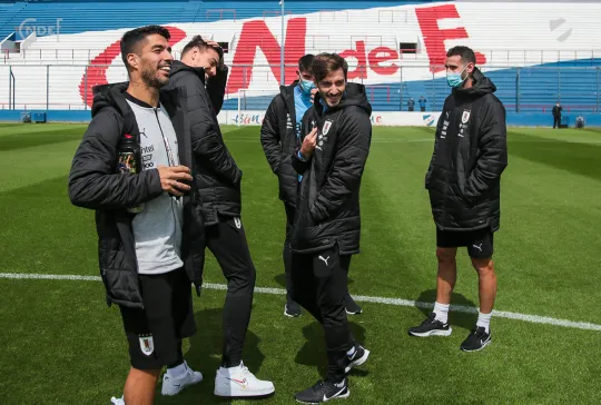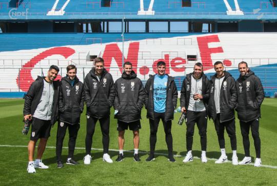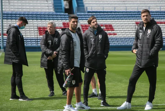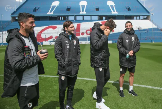Todos los futbolistas junto al Cuerpo Técnico encabezado por el Oscar W. Tabárez, recorrieron las instalaciones y en la recorrida informal por el césped del Primer Estadio de la Copa del Mundo abundaron los elogios sobre el estado del campo de juego.