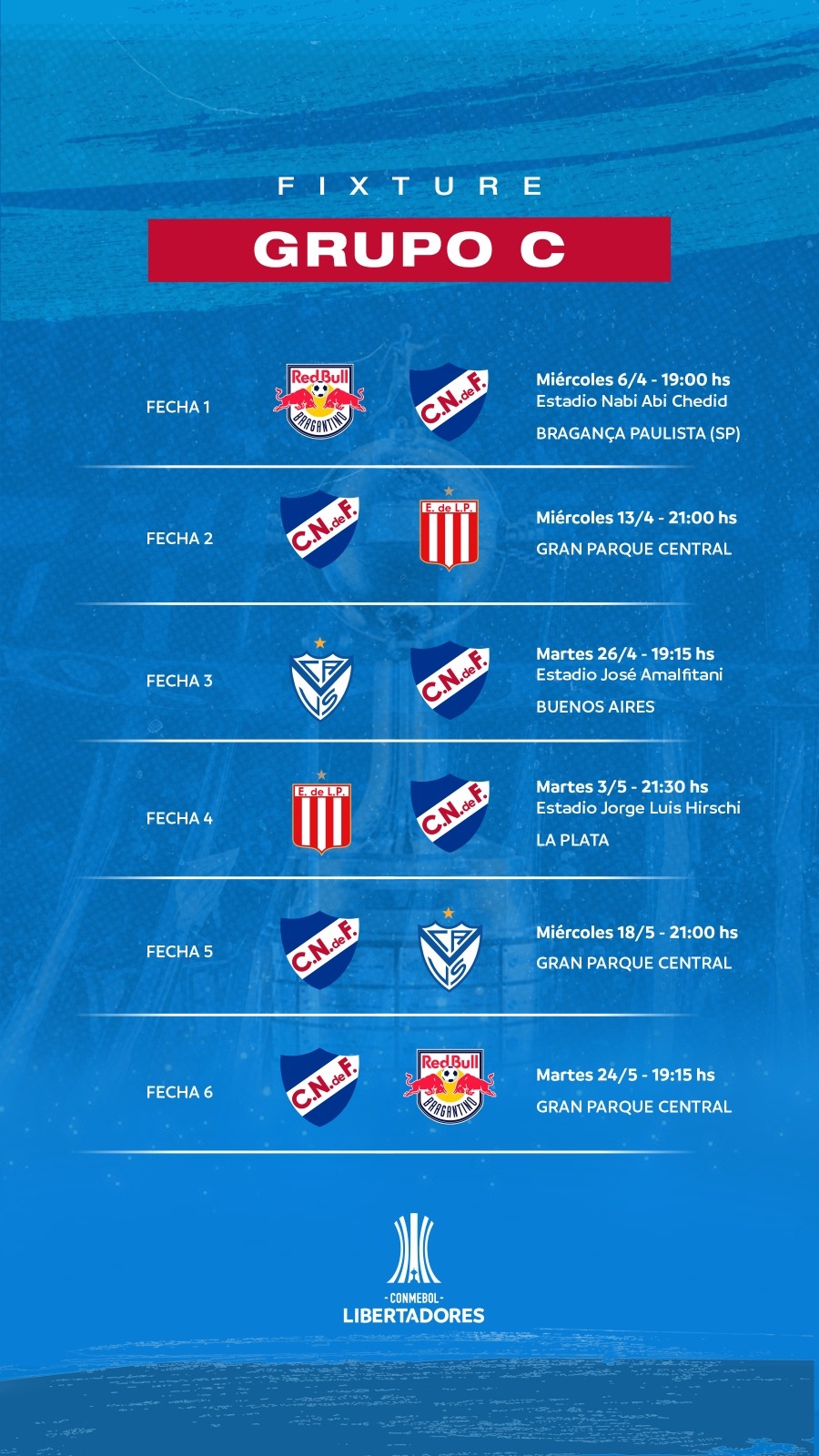 Este último puede compartir grupo con Velez, a pesar de ser del mismo país, ya que clasificó desde la fase 3.