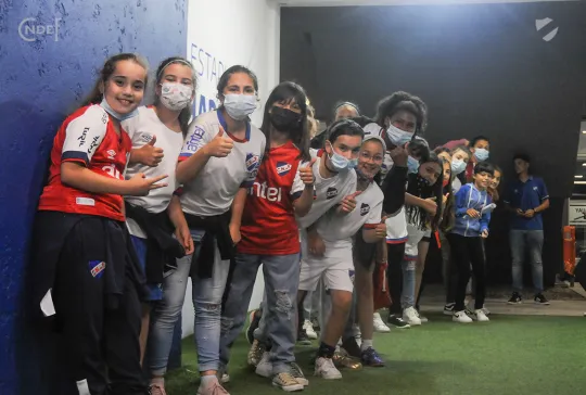 Las categorías Sub11 y Sub13 femeninas del fútbol infantil de Nacional, se hicieron presentes e ingresaron de mascotas, viviendo el partido muy cerca de la cancha donde además juega su DT Valeria Colman.