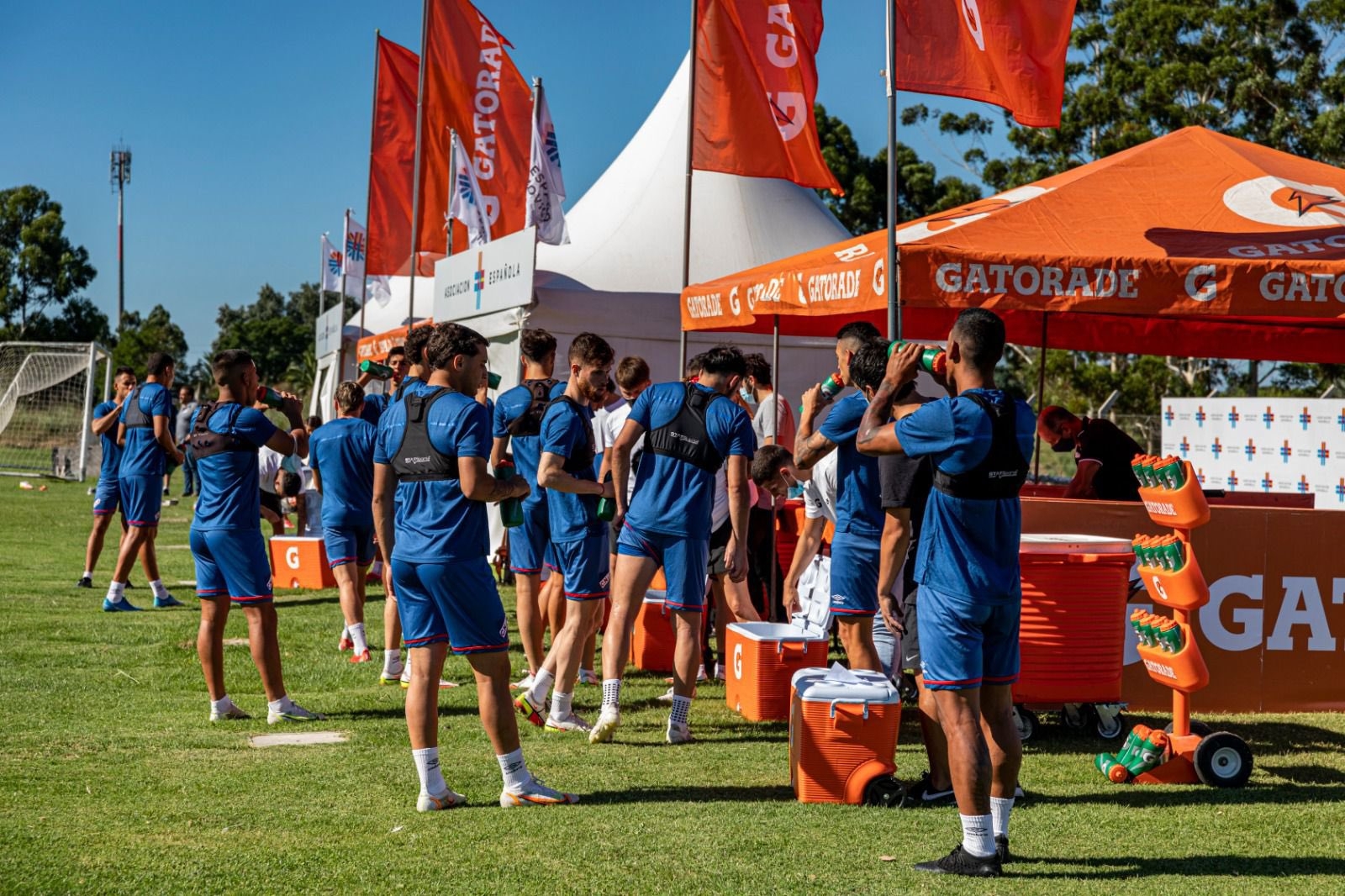 Los jugadores realizaron el entrenamiento utilizando el parche inteligente adherido al antebrazo izquierdo, durante el mismo tuvieron varias instancias de hidratación.
