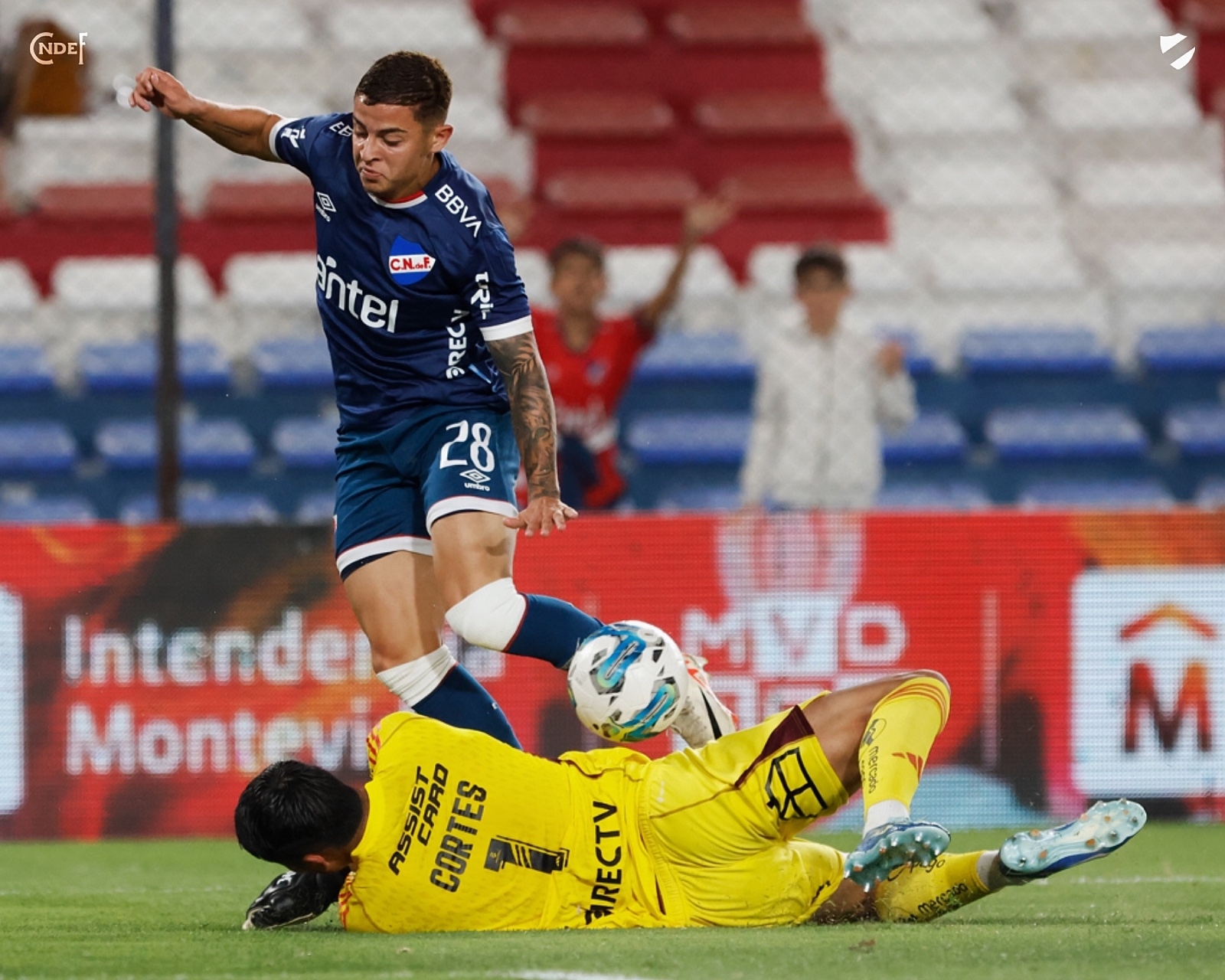 A los 26' llegó la más clara para Nacional en lo que iba del partido, tras una gran corrida de Antonio Galeano, hoy jugando como carrilero derecho, asistió a Facundo De León que llegó hasta el área, se perfiló para el medio y llegó a sacar un remate que terminó en las manos del portero chileno.
