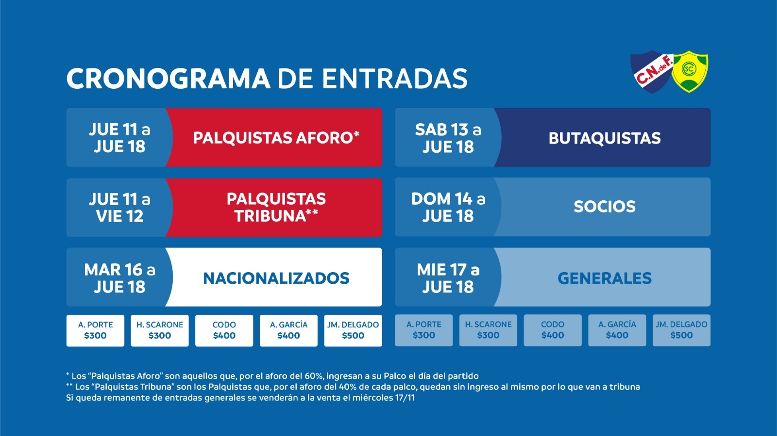 La parcialidad de Cerrito tendra un precio único de $ 300 Tribuna Scarone.