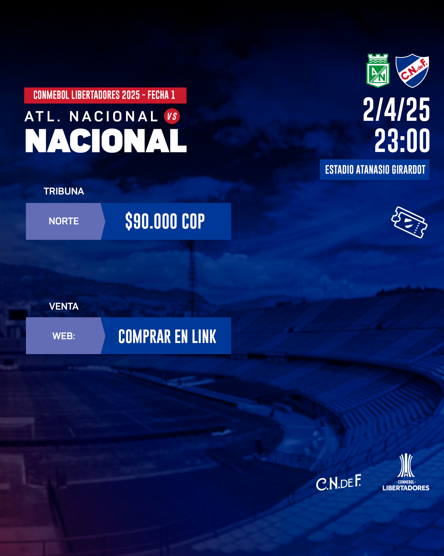 A continuación compartimos detalles sobre la venta de entradas para el partido por CONMEBOL Libertadores en Medellín