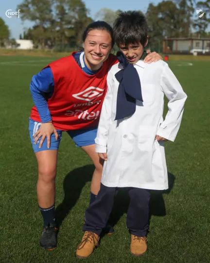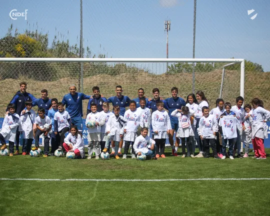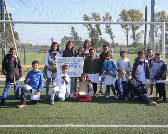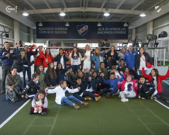 Luego fueron guiados por un recorrido por todas las instalaciones, presenciaron un entrenamiento del plantel principal y cerraron la mañana con todo el plantel que tenían preparados regalos para los niños y niñas para culminar con una foto grupal que se llevaron para el recuerdo de todos.