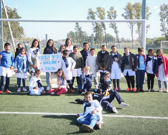En una iniciativa conjunta del plantel principal, Comisión del Interior y la Secretaría Social, Nacional recibió esta semana a alumnos de dos escuelas rurales: la nº 33 de Pueblo Biassini a 80 Km de Salto (tiene18 alumnos) y la escuela rural nº63 de Paso la Cruz, Artigas (tiene un solo alumno).