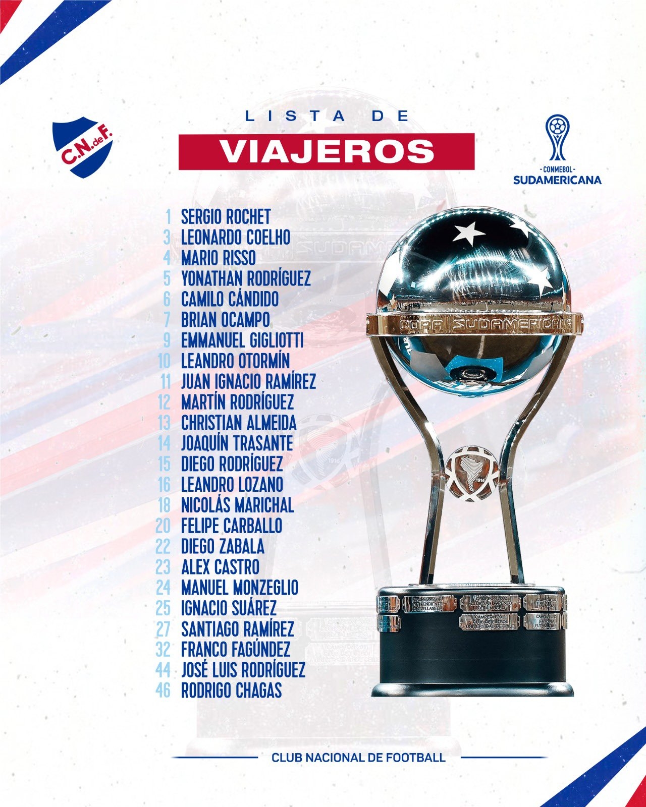 Estos son los 24 jugadores que estarán a disposición del Cuerpo Técnico para la revancha copera en Argentina: