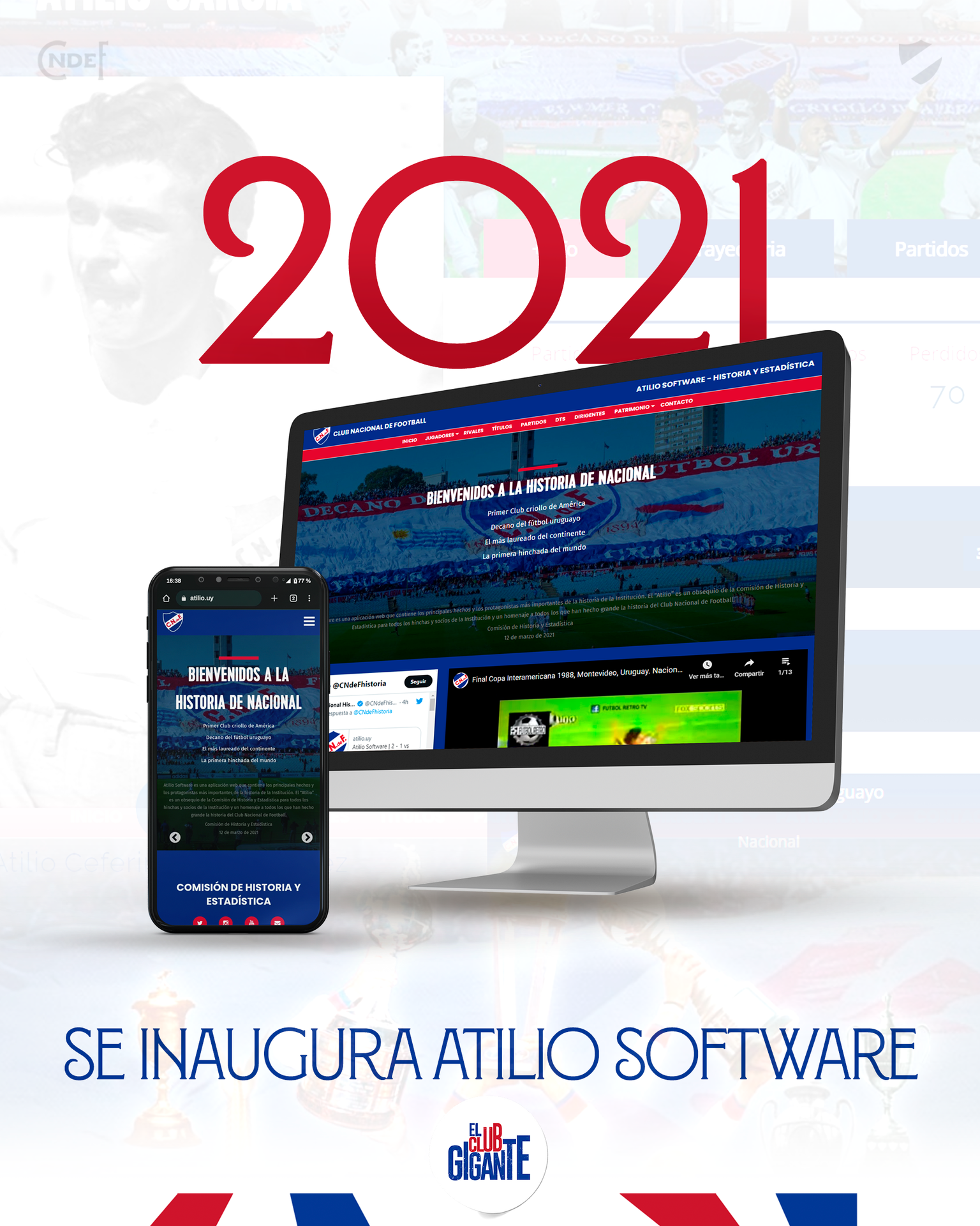 Un 12 de marzo de 2021 Nacional lanza #AtilioSoftware, la aplicación web con los hechos históricos y estadísticas más completa de un club de fútbol a nivel mundial.