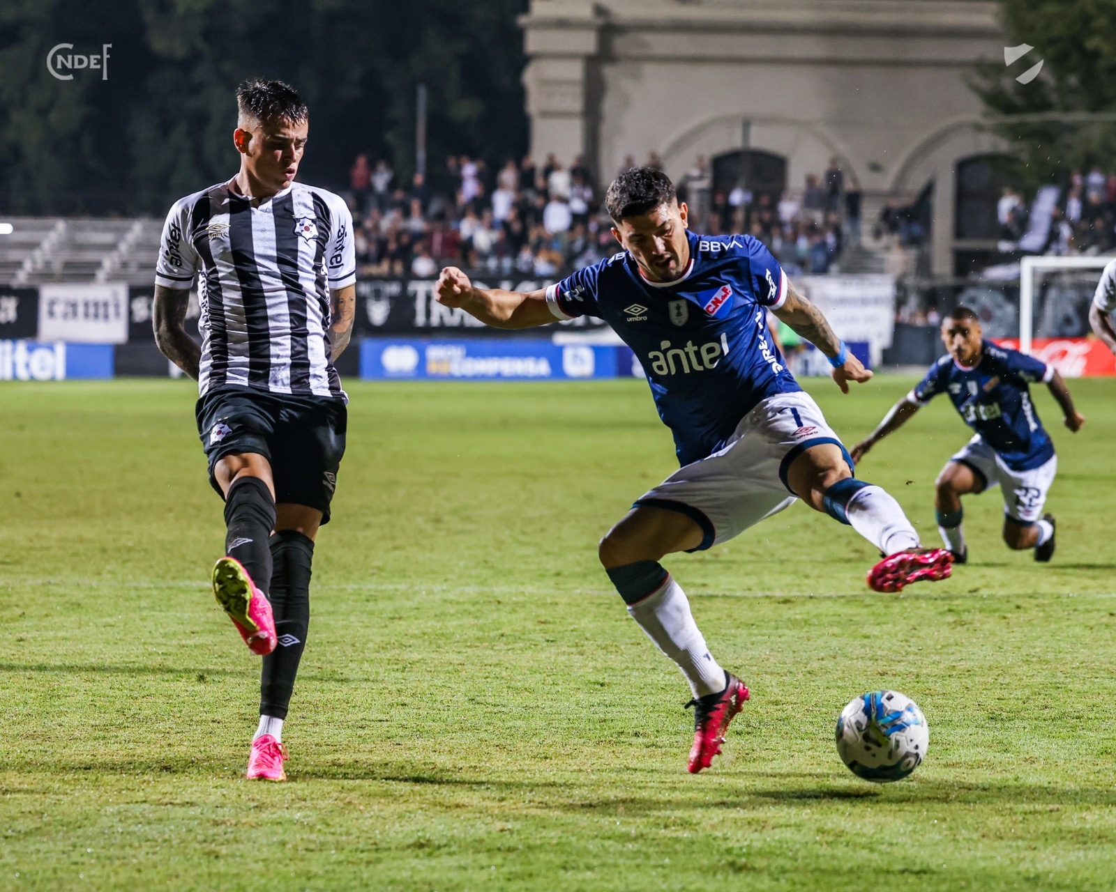 Faltando prácticamente nada para el final, el árbitro Christian Ferreyra pita penal para Nacional por un empujón claro, que tras revisión VAR terminó sancionando tiro libre al borde del área. Todo Wanderers estaba en la barrera, y con eso en mente el Decano ensayó una jugada "de laboratorio", Fagúndez habilitó al "Patrón" Diego Polenta que llegó sólo, sin marca, y definió notable a quemarropa para marcar el primer gol del partido.
