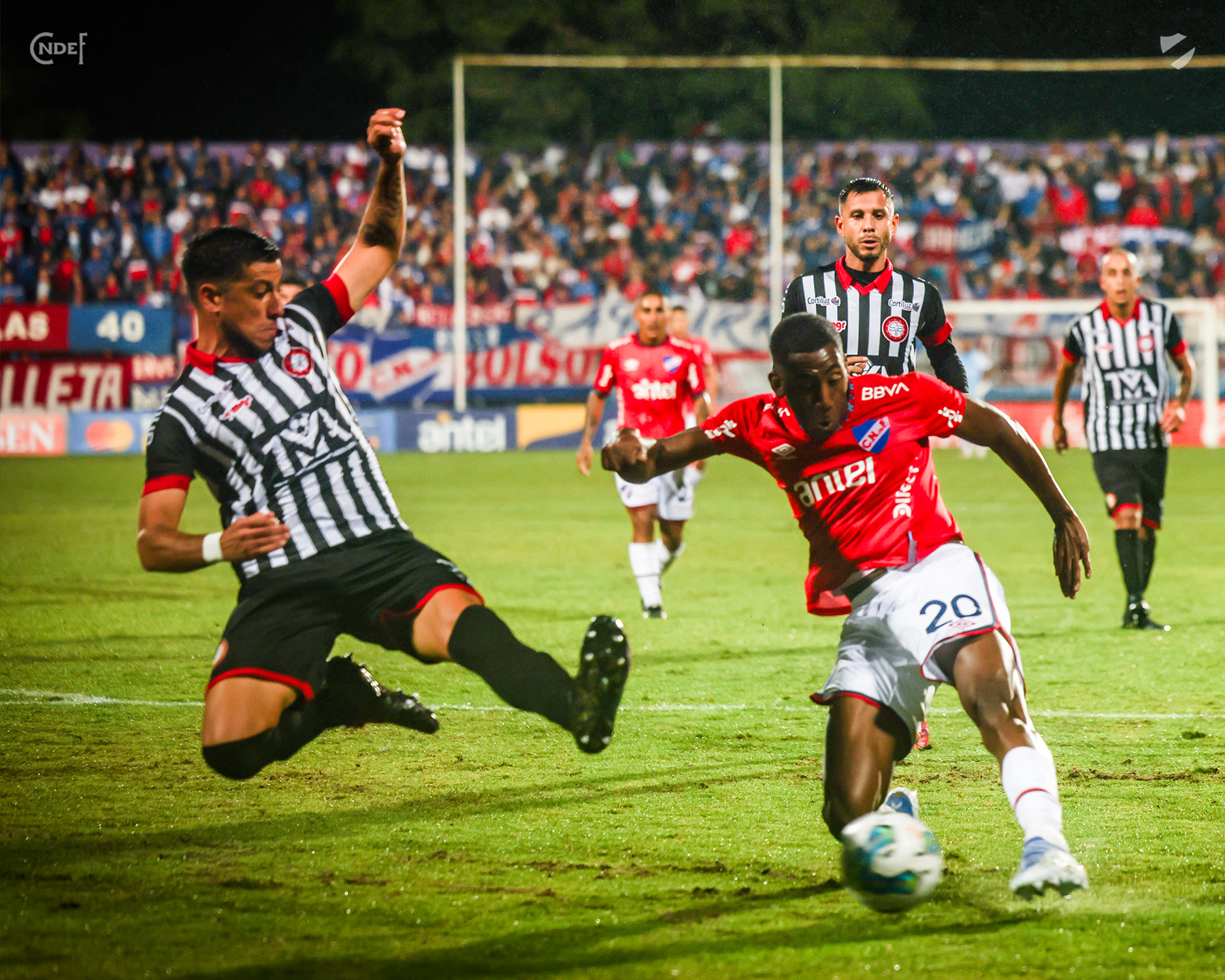 Pero Nacional se fue arriba en busca de la rápida igualdad y la consiguió a los 40' de la primera mitad, en pocos toques y tras un gran pase filtrado de Diego Zabala que puso en carrera a Gonzalo Carneiro y lo dejó de cara al gol dentro del área, el 9 Tricolor definió cruzado con gran calidad para vencer al portero "cebrita" e igualar así las acciones en el Estadio Luis Franzini, poniendo un poco de justicia a lo visto en la primera parte.