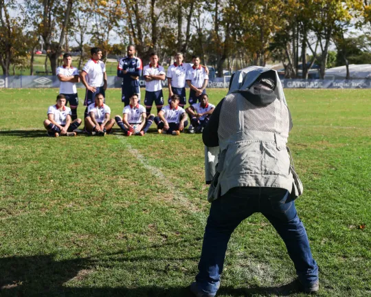 En la imágen recreada por el plantel actual, se respetó el orden de acuerdo a las posiciones en la cancha que ocupaban los futbolistas de esa primera foto.