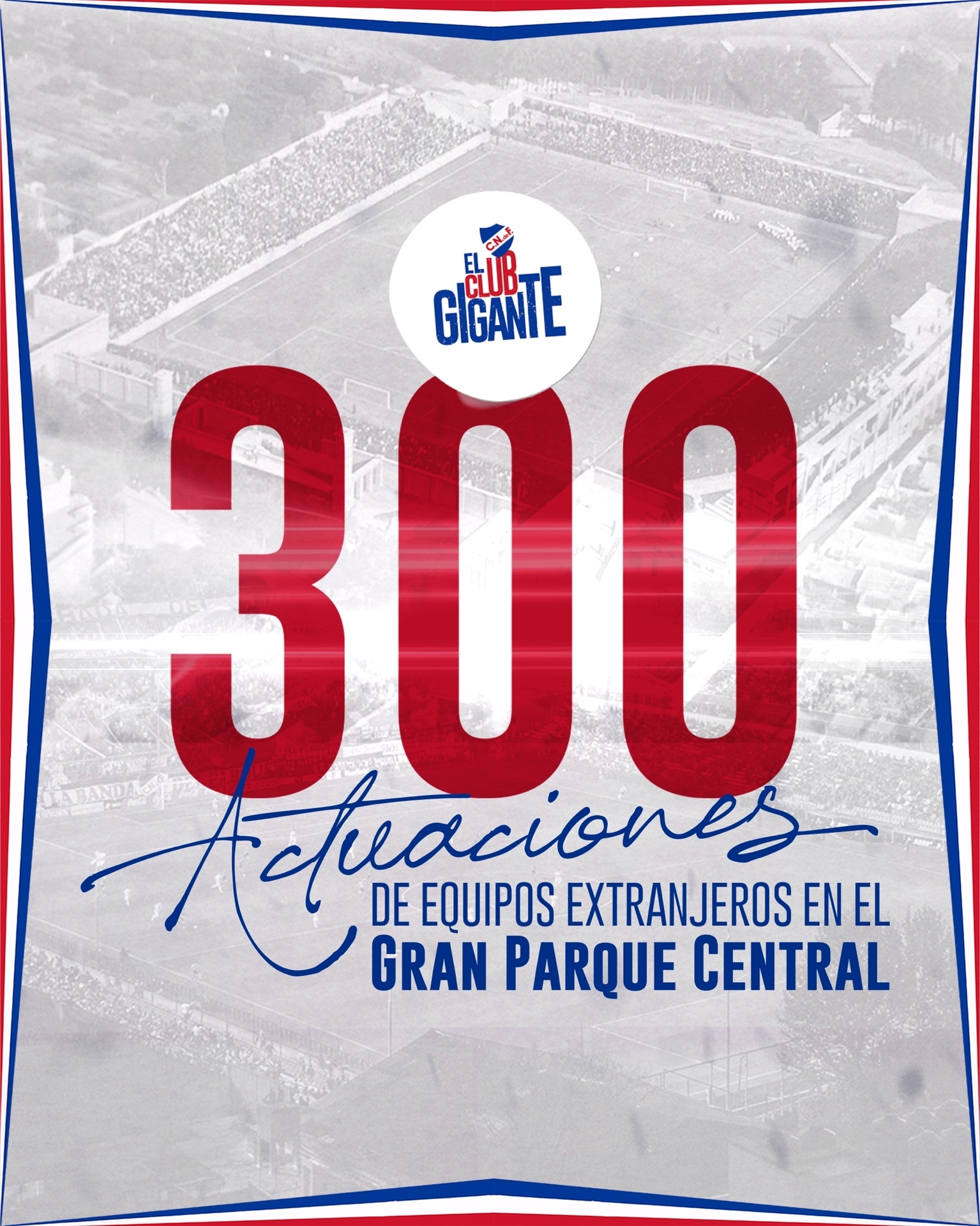 Con la participación de Vélez Sarsfield en el partido amistoso internacional del 11 de Enero, el Gran Parque Central alcanza la actuación número 300 de un equipo extranjero.